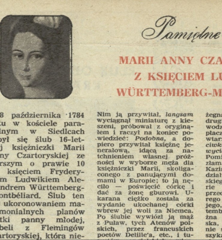 Archiwum / Nauka nr 2002 (43/1983) 11/44 Podziel się Tytuł Pamiętne śluby Marii Anny Czartoryskiej z Księciem Ludwikiem Würtemberg-Montbeliard Kategoria Nauka Artykuł z numeru 2002 (43/1983) Data wydania 23 października 1983 Tagi ślub historia Anna Maria Czartoryska