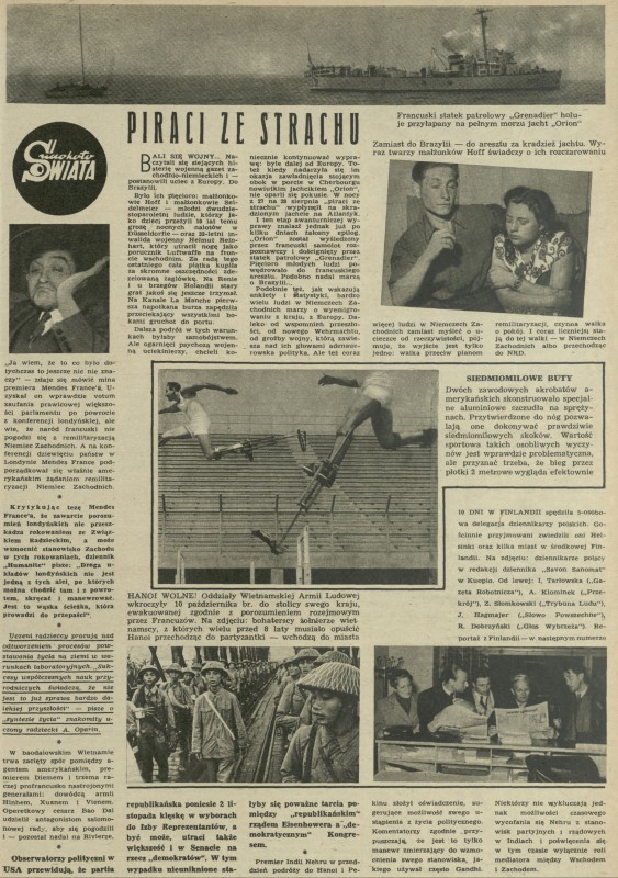Archiwum / Naokoło świata nr 498 (43/1954) 18193/121061 Podziel się Tytuł Naokoło świata Rubryka Naokoło świata Artykuł z numeru 498 (43/1954) Data wydania 24 października 1954 Tagi Mendes France Grenadier Francja Finlandia