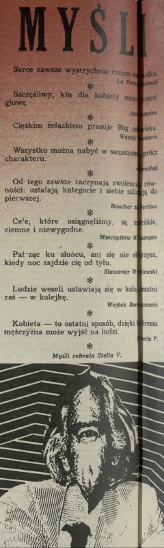 Archiwum / Myśli nr 2303 (31/1989) 11/11 Podziel się Tytuł Myśli Autor Stella Varcaby Rubryka Myśli Artykuł z numeru 2303 (31/1989) Data wydania 30 lipca 1989 Tagi Krecia P. myśli sentencje