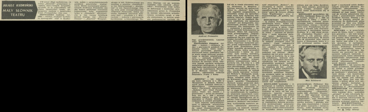 Archiwum / Mały słownik teatru XX wieku nr 583 (24/1956) 49/66 Podziel się Tytuł Mały słownik teatru XX wieku – P, R Autor Juliusz Kydryński Rubryka Mały słownik teatru XX wieku Artykuł z numeru 583 (24/1956) Data wydania 10 czerwca 1956 Tagi teatr Pronaszko reklama reflektor regulamin teatralny Reinhardt rekwizyt