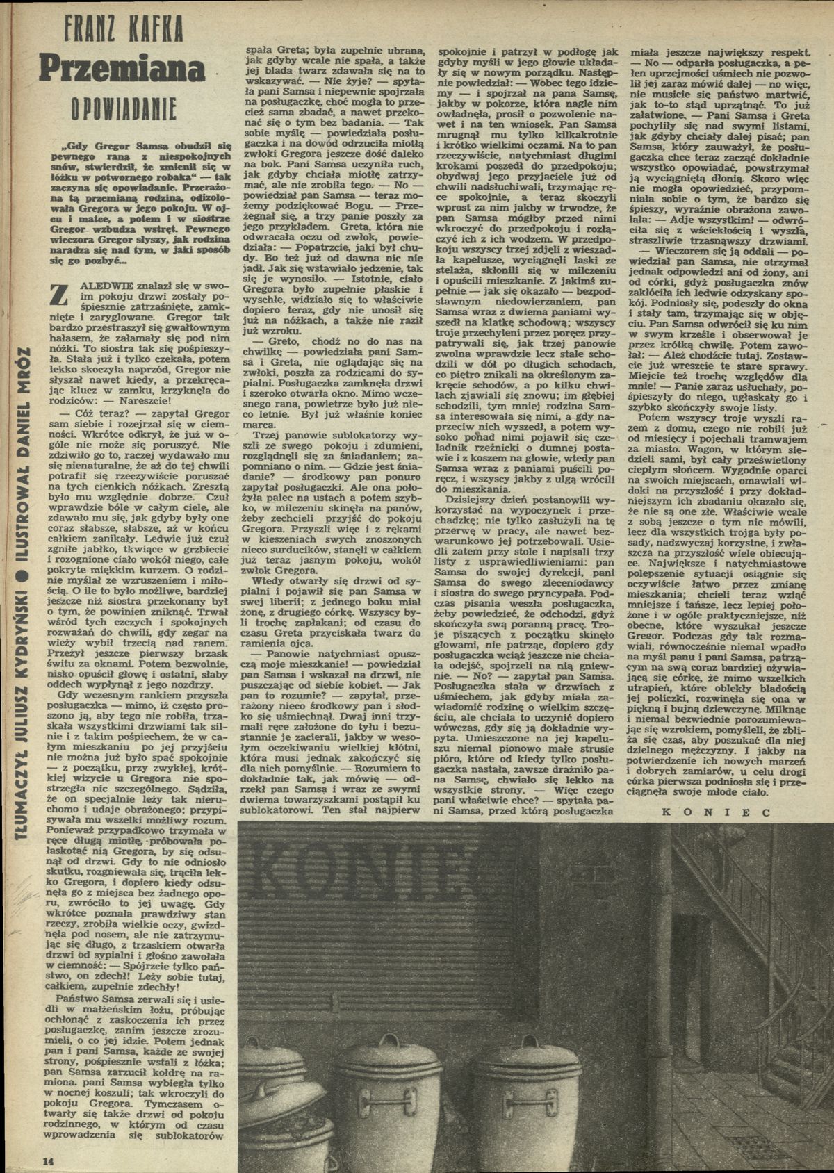 Archiwum / Opowiadanie nr 580 (21/1956) 17/42 Podziel się Tytuł Przemiana Autor Franz Kafka Juliusz Kydryński Kategoria Opowiadanie Artykuł z numeru 580 (21/1956) Data wydania 10 maja 1956 Tagi literatura niemiecka Daniel Mróz