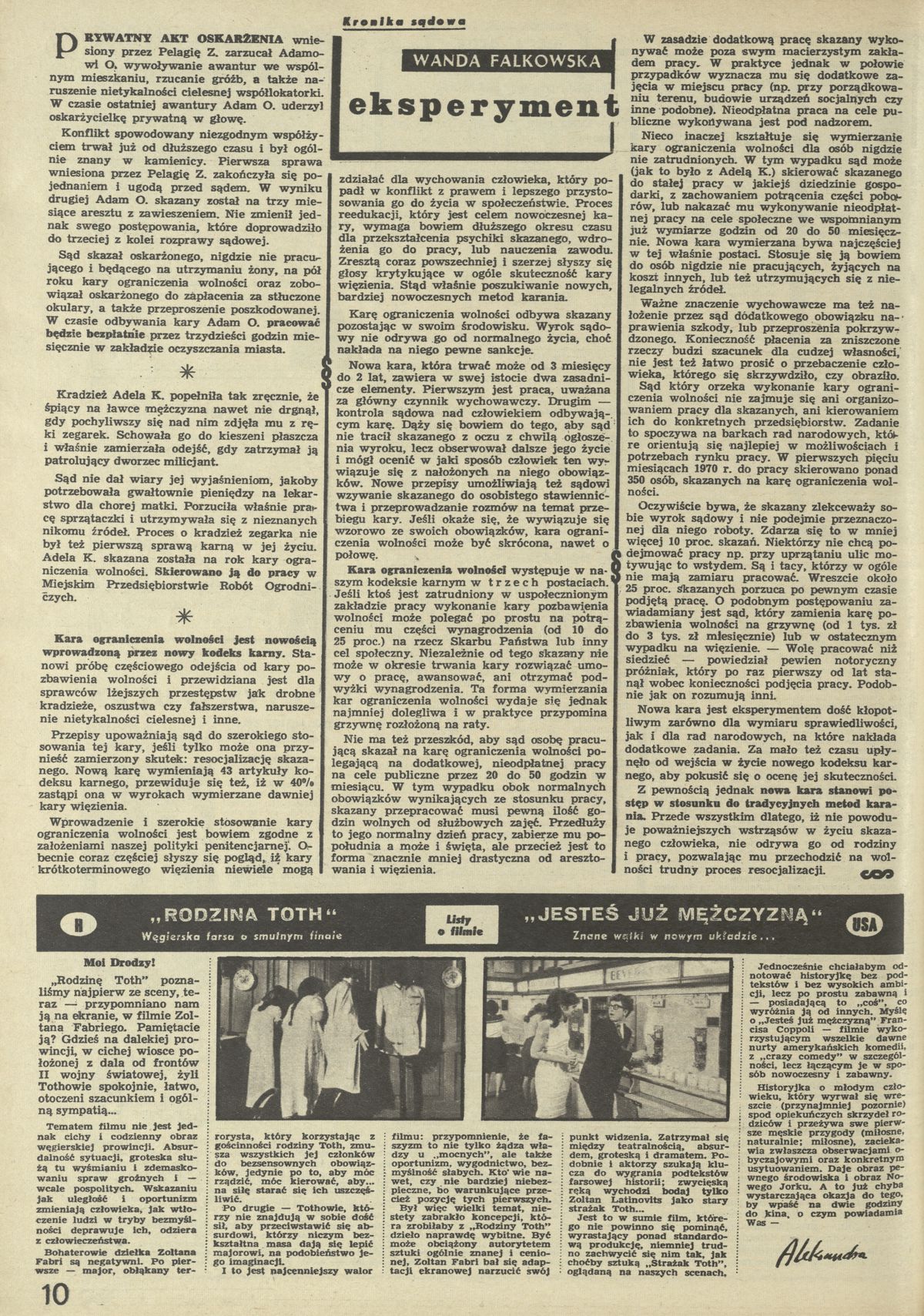 Archiwum / Listy o filmie nr 1327 (37/1970) 37/523 Podziel się Tytuł „Rodzina Toth”, „Jesteś już mężczyzną” Autor Aleksandra Rubryka Listy o filmie Artykuł z numeru 1327 (37/1970) Data wydania 13 września 1970