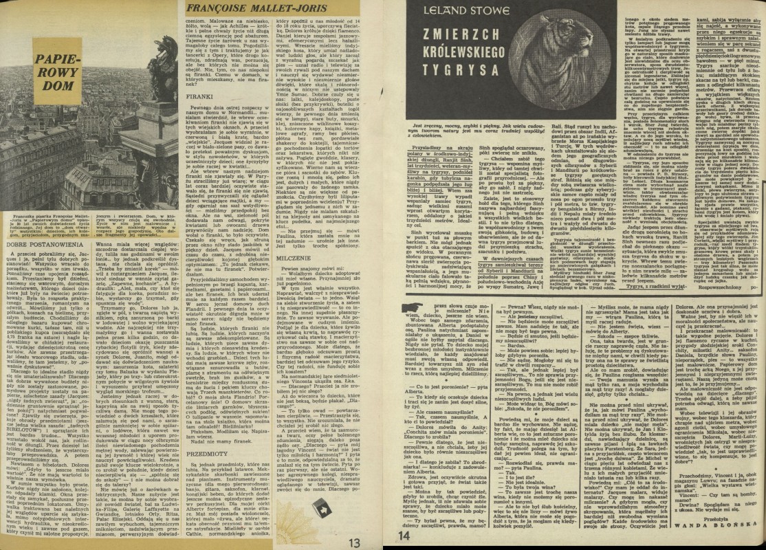Archiwum / Książki nr 1327 (37/1970) 39/216 Podziel się Tytuł Papierowy dom Autor Mallet-Joris Francoise Wanda Błońska Rubryka Książki Artykuł z numeru 1327 (37/1970) Data wydania 13 września 1970