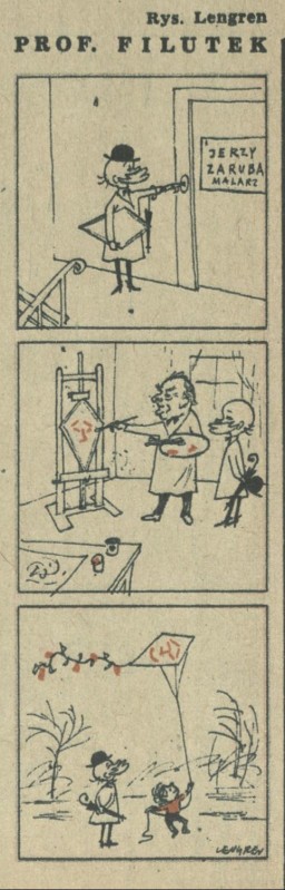 Archiwum / Profesor Filutek nr 503 (48/1954) 75/80 Podziel się Tytuł Prof. Filutek Autor Zbigniew Lengren Rubryka Profesor Filutek Artykuł z numeru 503 (48/1954) Data wydania 28 listopada 1954 Tagi żart rysunkowy Zaruba malarz latawiec