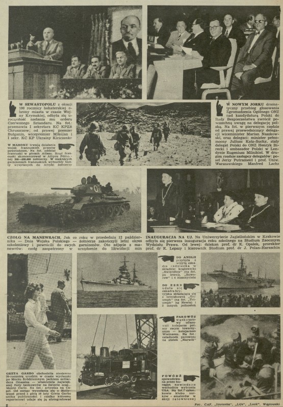 Archiwum / Przekrój tygodnia nr 550 (43/1955) 2/2 Podziel się Tytuł Przekrój tygodnia Autor CAF Rubryka Przekrój tygodnia Artykuł z numeru 550 (43/1955) Data wydania 23 października 1955 Tagi ONZ Wojna Krymska Maroko czołg Uniwersytet Jagielloński Greta Garbo
