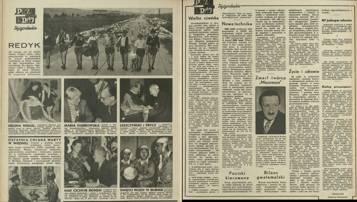 Archiwum / Przekrój tygodnia nr 529 (22/1955) 11/22 Podziel się Tytuł Przekrój tygodnia Autor CAF Andrzej Klominek Rubryka Przekrój tygodnia Artykuł z numeru 529 (22/1955) Data wydania 29 maja 1955 Tagi redyk Leszczyński Frycz Dąbrowska