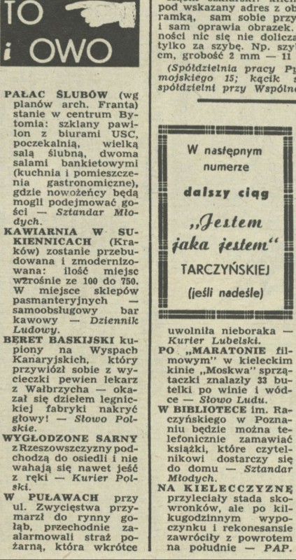 Archiwum / To i owo nr 931 (06/1963) 84930/123969 Podziel się Tytuł To i owo Rubryka To i owo Artykuł z numeru 931 (6/1963) Data wydania 10 lutego 1963 Tagi kawiarnia w Sukiennicach różności to i owo