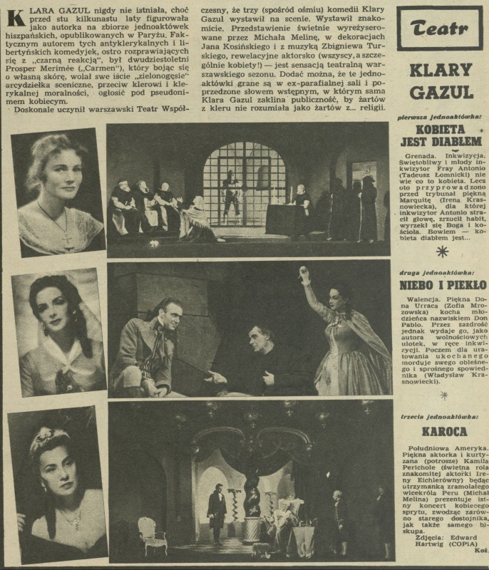 Archiwum / Teatr nr 524 (17/1955) 419/1291 Podziel się Tytuł Teatr Autor Koź. Rubryka Teatr Artykuł z numeru 524 (17/1955) Data wydania 24 kwietnia 1955 Tagi Teatr Klary Gazul Teatr Współczesny komedia
