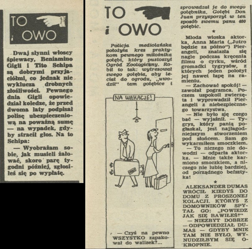 Archiwum / To i owo nr 539 (32/1955) 249/415 Podziel się Tytuł To i owo Rubryka To i owo Artykuł z numeru 539 (32/1955) Data wydania 7 sierpnia 1955 Tagi Schipa śpiewak
