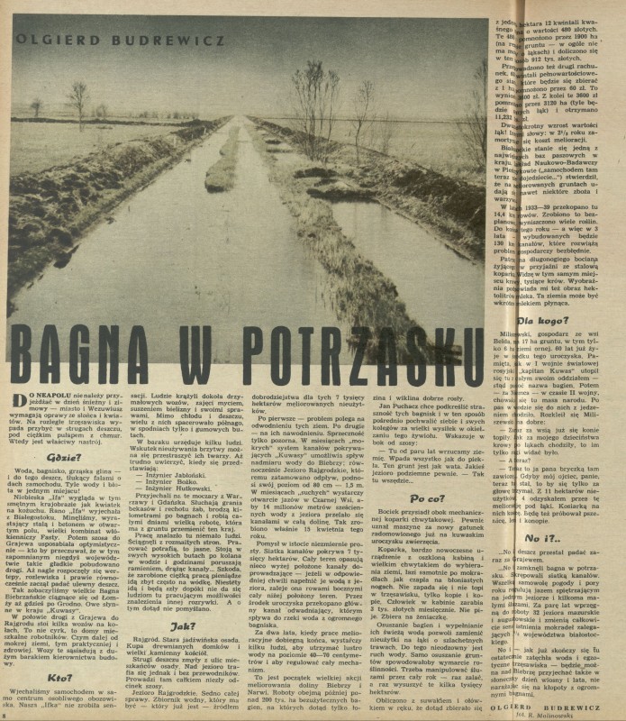 Archiwum / Reportaż nr 533 (26/1955) 32/335 Podziel się Tytuł Bagna w potrzasku Autor Olgierd Budrewicz Roman Malinowski Kategoria Reportaż Artykuł z numeru 533 (26/1955) Data wydania 26 czerwca 1955 Tagi wieś Rajgród Biebrza