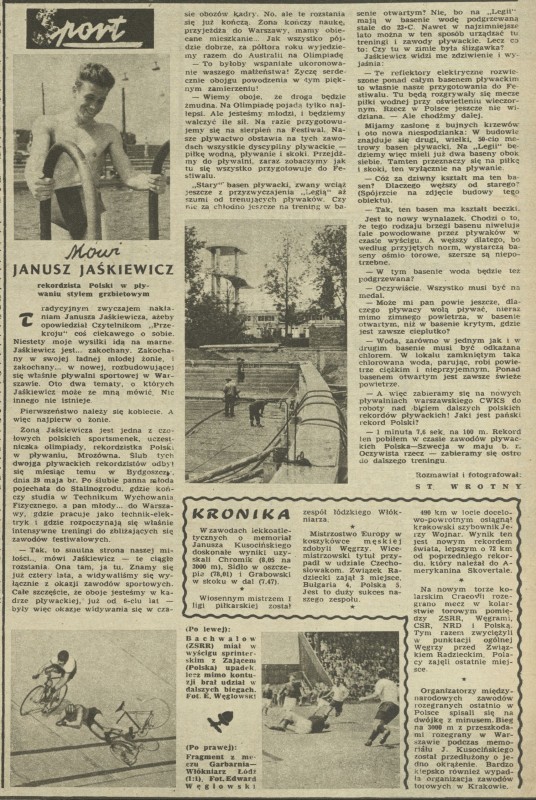 Archiwum / Sport nr 533 (26/1955) 102/131 Podziel się Tytuł Mówi Janusz Jaśkiewcz - rekordzista Polski w pływaniu stylem grzbietowym Autor Stanisław Wrotny Rubryka Sport Artykuł z numeru 533 (26/1955) Data wydania 26 czerwca 1955