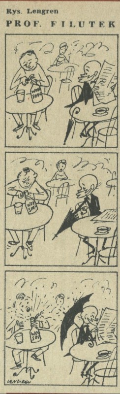 Archiwum / Profesor Filutek nr 533 (26/1955) 22/45 Podziel się Tytuł Prof. Filutek Autor Zbigniew Lengren Rubryka Profesor Filutek Artykuł z numeru 533 (26/1955) Data wydania 26 czerwca 1955 Tagi żart rysunkowy woda sodowa parasol
