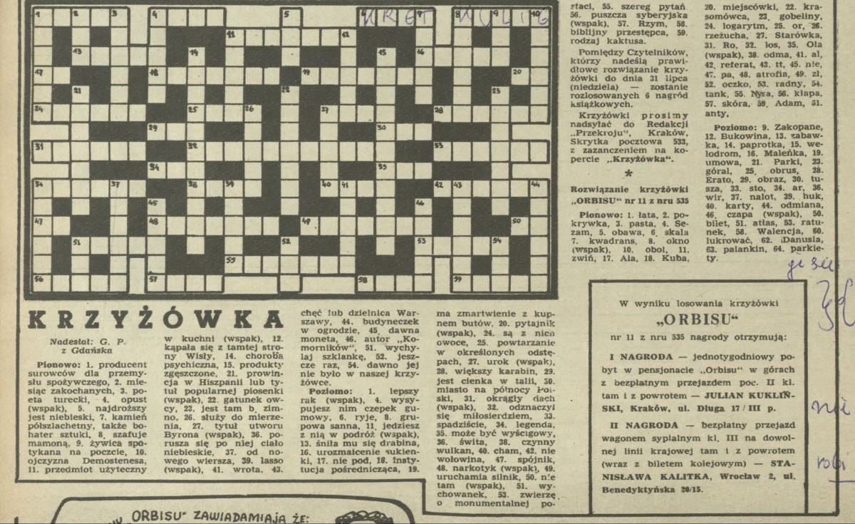 Archiwum / Krzyżówka nr 537 (30/1955) 122/799 Podziel się Tytuł Krzyżówka Rubryka Krzyżówka Artykuł z numeru 537 (30/1955) Data wydania 22 lipca 1955