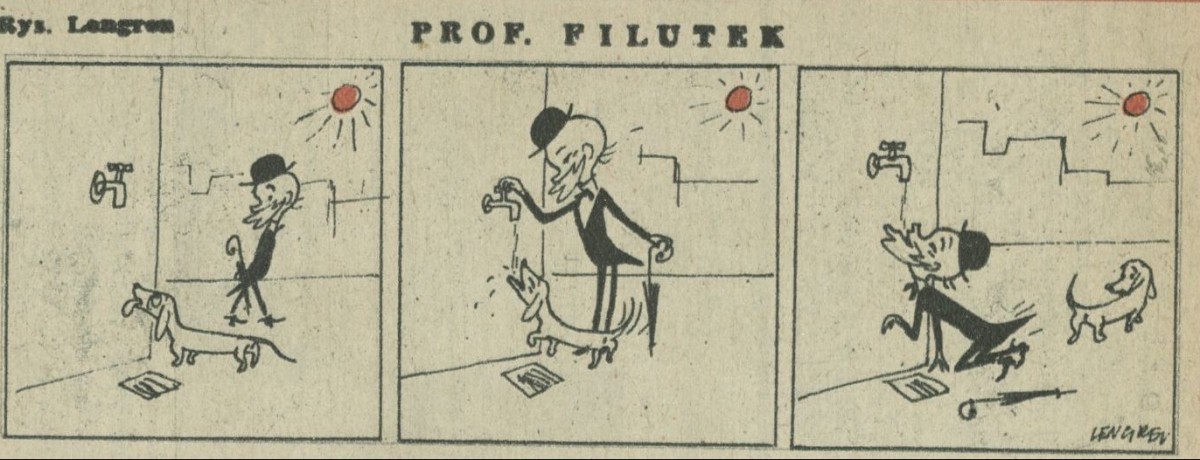 Archiwum / Profesor Filutek nr 537 (30/1955) 20/45 Podziel się Tytuł Prof. Filutek Autor Zbigniew Lengren Rubryka Profesor Filutek Artykuł z numeru 537 (30/1955) Data wydania 22 lipca 1955 Tagi żart rysunkowy kran pies