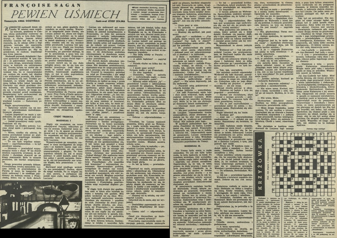 Archiwum / Proza nr 597 (38/1956) 38/42 Podziel się Tytuł Pewien uśmiech Autor Franciose Sagan Anna Gostyńska Kategoria Proza Artykuł z numeru 597 (38/1956) Data wydania 16 września 1956 Tagi fragmenty powieści romans literatura francuska Szajna