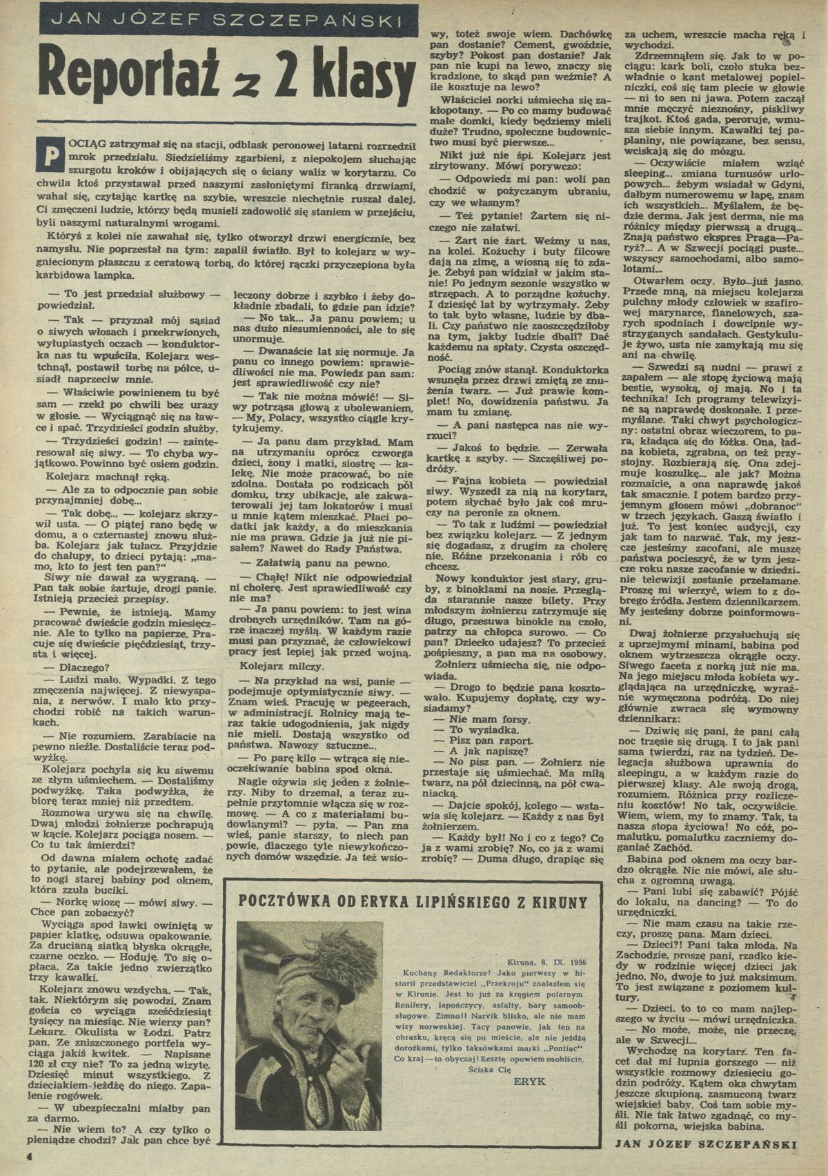 Archiwum / Reportaż nr 598 (39/1956) 45/60 Podziel się Tytuł Reportaż z 2 klasy Autor Jan Józef Szczepański Kategoria Reportaż Artykuł z numeru 598 (39/1956) Data wydania 23 września 1956 Tagi podróż pociąg kolej