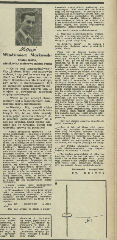 Archiwum / Sport nr 548 (41/1955) 20913/123969 Podziel się Tytuł Mówi Włodzimierz Markowski - motorowy mistrz Polski Autor Stanisław Wrotny Rubryka Sport Artykuł z numeru 548 (41/1955) Data wydania 9 października 1955 Tagi motor motocykl zawody żużlowe