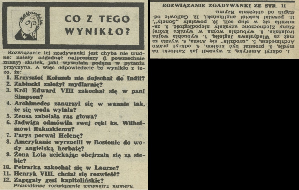 Archiwum / Zastanów się nr 552 (45/1955) 172/269 Podziel się Tytuł Co z tego wynikło? Rubryka Zastanów się Artykuł z numeru 552 (45/1955) Data wydania 6 listopada 1955 Tagi zagadka zgadywanka przyczyna skutek