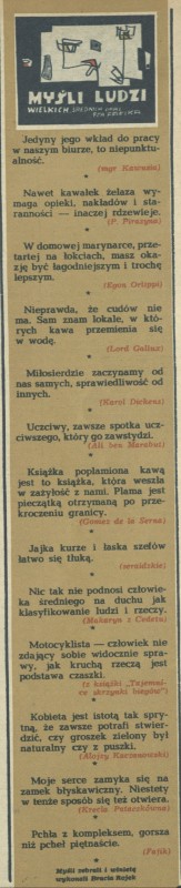 Archiwum / Myśli nr 930 (05/1963) 11/131 Podziel się Tytuł Myśli ludzi wielkich, średnich i psa Fafika Autor Bracia Rojek Rubryka Myśli Artykuł z numeru 930 (5/1963) Data wydania 3 lutego 1963 Tagi pies Fafik Krecia P. myśli