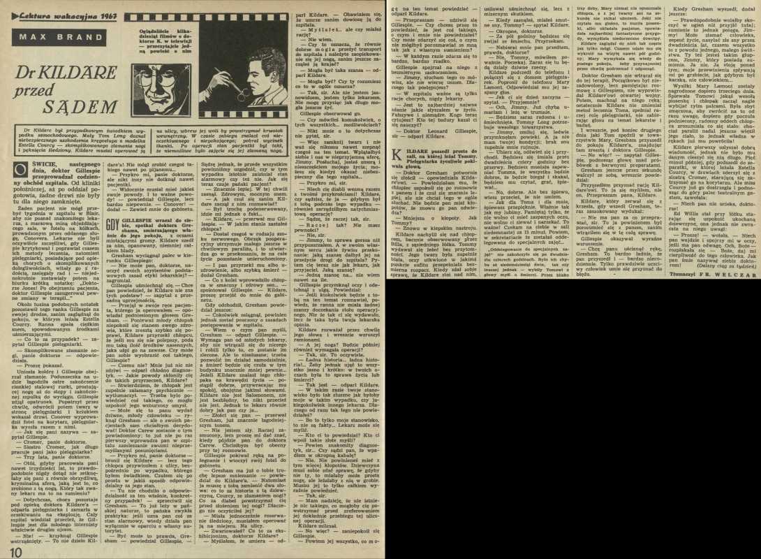 Archiwum / Proza nr 1167 (34/1967) 48675/123969 Podziel się Tytuł Dr Kildare przed sądem Autor Max Brand Franciszek Welczar Kategoria Proza Artykuł z numeru 1167 (34/1967) Data wydania 20 sierpnia 1967 Tagi literatura amerykańska
