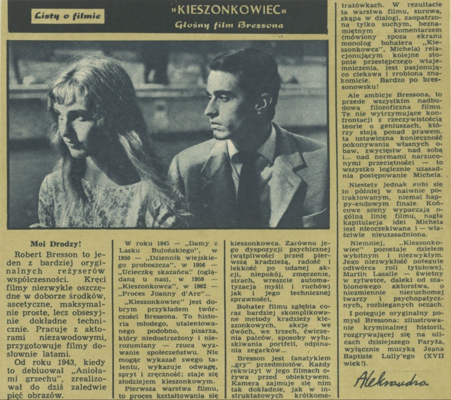 Archiwum / Listy o filmie nr 932 (07/1963) 147/470 Podziel się Tytuł Listy o filmie Autor Aleksandra Rubryka Listy o filmie Artykuł z numeru 932 (7/1963) Data wydania 17 lutego 1963 Tagi "Kieszonkowiec" Robert Bresson