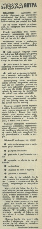 Archiwum / Różności nr 932 (07/1963) 11/36 Podziel się Tytuł Męska grypa Autor Lordowa Galluxowa Kategoria Różności Artykuł z numeru 932 (7/1963) Data wydania 17 lutego 1963 Tagi męska grypa choroba przeziębienie
