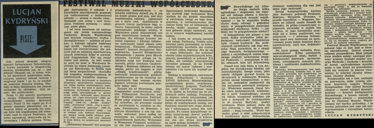 Archiwum / Kultura nr 603 (44/1956) 92/145 Podziel się Tytuł Festwial Muzyki Współczesnej Autor Lucjan Kydryński Kategoria Kultura Artykuł z numeru 603 (44/1956) Data wydania 28 października 1956 Tagi Alfred Brendel koncert fortepianowy