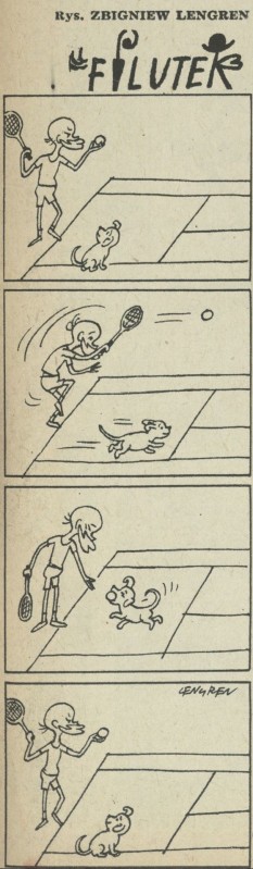 Archiwum / Profesor Filutek nr 955 (30/1963) 28/60 Podziel się Tytuł Prof. Filutek Autor Zbigniew Lengren Rubryka Profesor Filutek Artykuł z numeru 955 (30/1963) Data wydania 28 lipca 1963 Tagi żart rysunkowy pies Filuś tenis aport
