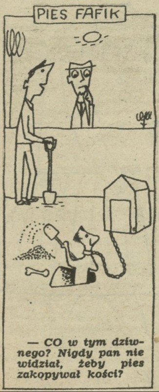 Archiwum / Historyjki obrazkowe nr 603 (44/1956) 18/139 Podziel się Tytuł Pies Fafik Autor Marian Eile Kategoria Historyjki obrazkowe Artykuł z numeru 603 (44/1956) Data wydania 28 października 1956 Tagi żart rysunkowy pies kość