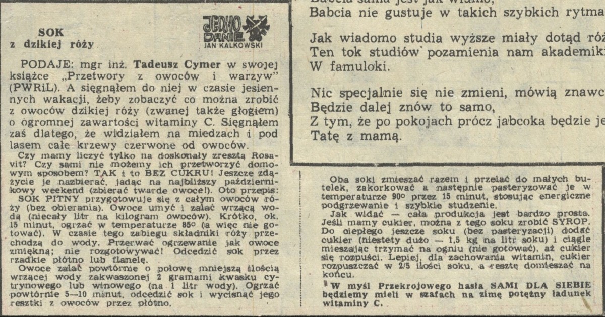 Archiwum / Jedno danie nr 1906 (42/1981) 78518/123969 Podziel się Tytuł Jedno danie - sok z dzikiej róży Autor Jan Kalkowski Rubryka Jedno danie Artykuł z numeru 1906 (42/1981) Data wydania 18 października 1981 Tagi jedno danie sok z dzikiej róży kuchnia