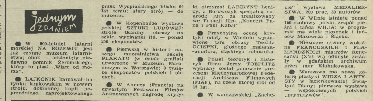 Archiwum / Jednym zdaniem nr 952 (27/1963) 25/57 Podziel się Tytuł Jednym zdaniem Rubryka Jednym zdaniem Artykuł z numeru 952 (27/1963) Data wydania 7 lipca 1963 Tagi Żeromski