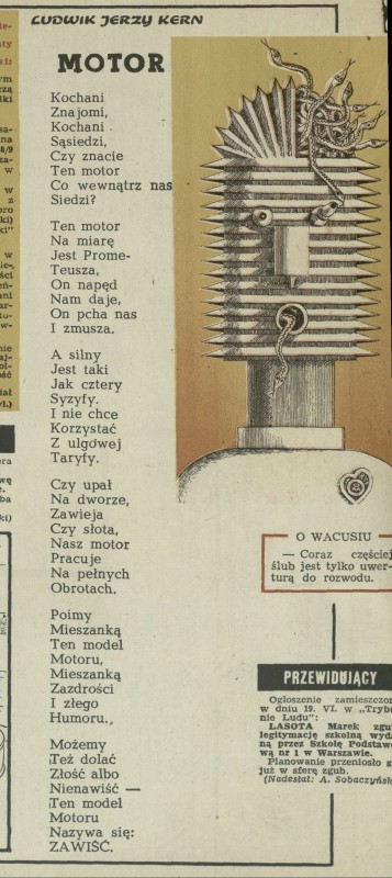 Archiwum / Poezja nr 952 (27/1963) 22/50 Podziel się Tytuł Motor Autor Ludwik Jerzy Kern Kategoria Poezja Artykuł z numeru 952 (27/1963) Data wydania 7 lipca 1963
