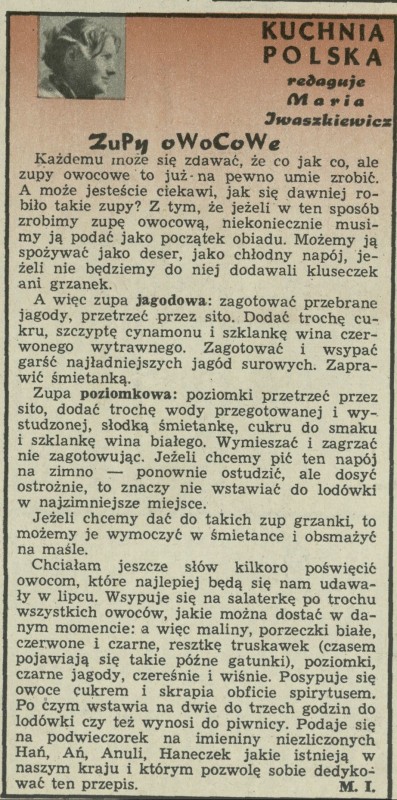 Archiwum / Kuchnia Polska nr 952 (27/1963) 40010/123969 Podziel się Tytuł Zupy owocowe Autor Maria Iwaszkiewicz Rubryka Kuchnia Polska Artykuł z numeru 952 (27/1963) Data wydania 7 lipca 1963