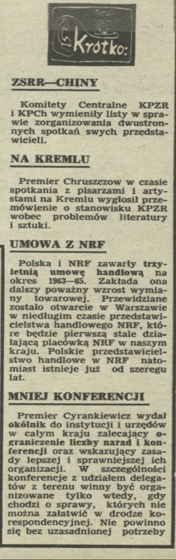 Archiwum / Krótko nr 936 (11/1963) 04/29 Podziel się Tytuł Krótko Rubryka Krótko Artykuł z numeru 936 (11/1963) Data wydania 17 marca 1963 Tagi Cyrankiewicz NFR Chruszczow ZSRR