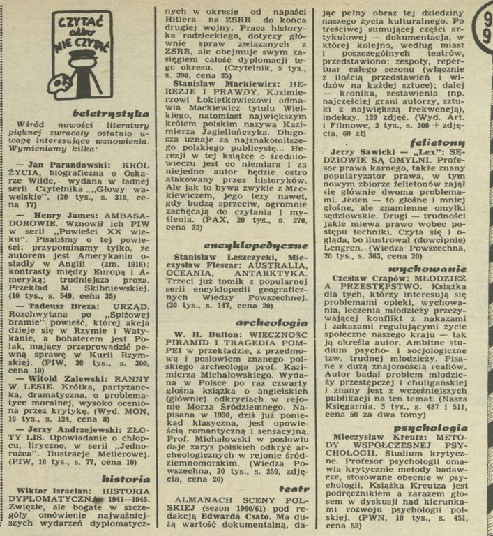 Archiwum / Czytać albo nie czytać? nr 939-40 (14-15/1963) 35/47 Podziel się Tytuł Czytać albo nie czytać? Rubryka Czytać albo nie czytać? Artykuł z numeru 939-40 (14/1963) Data wydania 14 kwietnia 1963 Tagi książki literatura