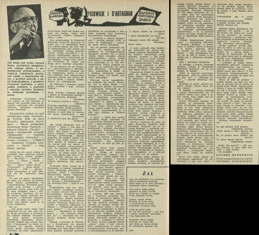 Archiwum / Beadeker warszawski nr 939-40 (14-15/1963) 29/78 Podziel się Tytuł Baedeker warszawski: ludzie. Pickwick i D'artagnan Autor Olgierd Budrewicz Rubryka Beadeker warszawski Artykuł z numeru 939-40 (14/1963) Data wydania 14 kwietnia 1963
