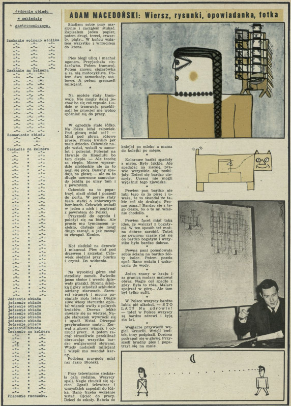 Archiwum / Rozrywka nr 939-40 (14-15/1963) 20/48 Podziel się Tytuł Wiersz, rysunki, opowiadanka, fotka Autor Adam Macedoński Kategoria Rozrywka Artykuł z numeru 939-40 (14/1963) Data wydania 14 kwietnia 1963 Tagi Adam Macedoński