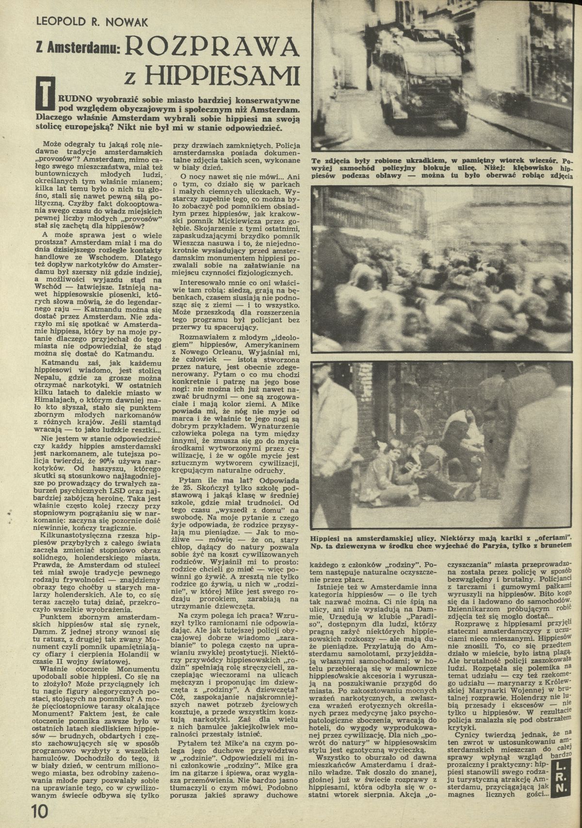 Archiwum / korespondencja własna "Przekroju" nr 1331 (41/1970) 06/19 Podziel się Tytuł Z Amsterdamu: Rozprawa z Hippiesami Autor Leopold R. Nowak Rubryka korespondencja własna "Przekroju" Artykuł z numeru 1331 (41/1970) Data wydania 11 października 1970
