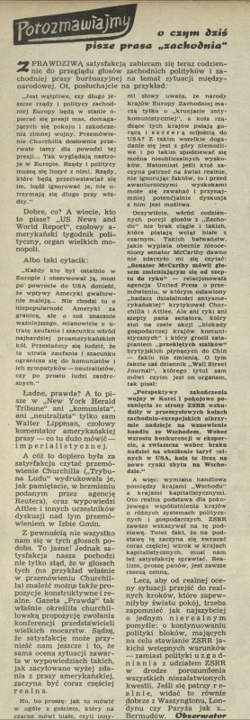Archiwum / Felieton nr 425 (22/1953) 3/8 Podziel się Tytuł Porozmawiajmy o czym dziś pisze prasa „zachodnia” Autor Obserwator Kategoria Felieton Artykuł z numeru 425 (22/1953) Data wydania 21 maja 1953 Tagi Churchill