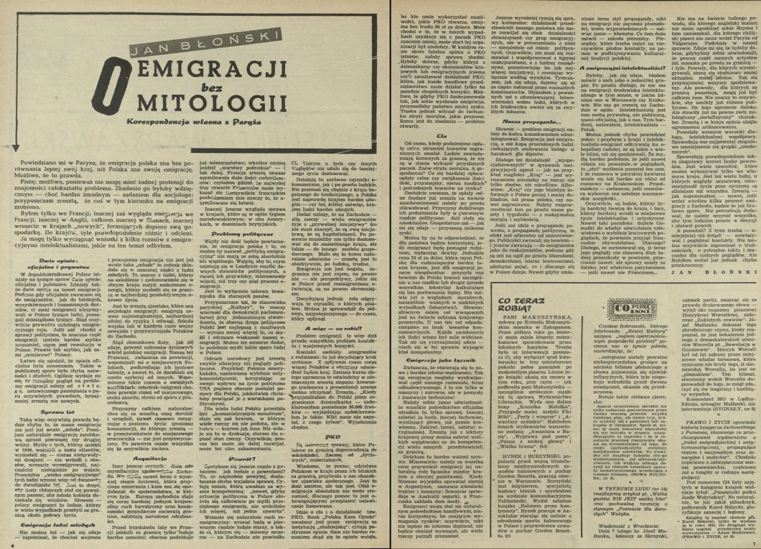 Archiwum / korespondencja własna "Przekroju" nr 621 (10/1957) 176/297 Podziel się Tytuł O emigracji bez mitologii Autor Jan Błoński Rubryka korespondencja własna "Przekroju" Artykuł z numeru 621 (10/1957) Data wydania 3 marca 1957 Tagi Paryż emigracja polonia Polska asymilacja