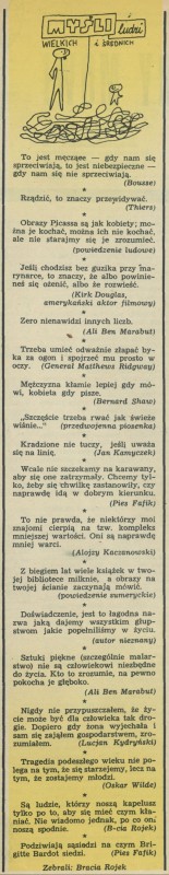 Archiwum / Myśli ludzi wielkich, średnich i psa Fafika nr 616 (05/1957) 04/87 Podziel się Tytuł Myśli ludzi wielkich i średnich Autor Bracia Rojek Rubryka Myśli ludzi wielkich, średnich i psa Fafika Artykuł z numeru 616 (5/1957) Data wydania 27 stycznia 1957 Tagi cytaty aforyzmy