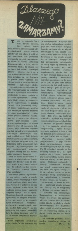 Archiwum / Nauka nr 617 (06/1957) 15/16 Podziel się Tytuł Dlaczego nie zamarzamy? Autor Mieczysław Lis Gawalewicz Kategoria Nauka Artykuł z numeru 617 (6/1957) Data wydania 3 lutego 1957 Tagi biologia organizm ciepło temperatura