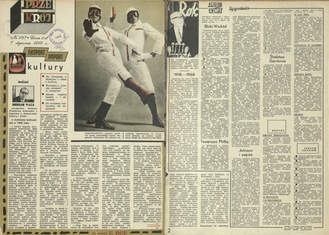 Archiwum / Sport nr 1187 (01/1968) 1269/1805 Podziel się Tytuł Eksport i import kultury Autor Stanisław Wrotny Rubryka Sport Artykuł z numeru 1187 (1/1968) Data wydania 7 stycznia 1968 Tagi Bogusław Płaza