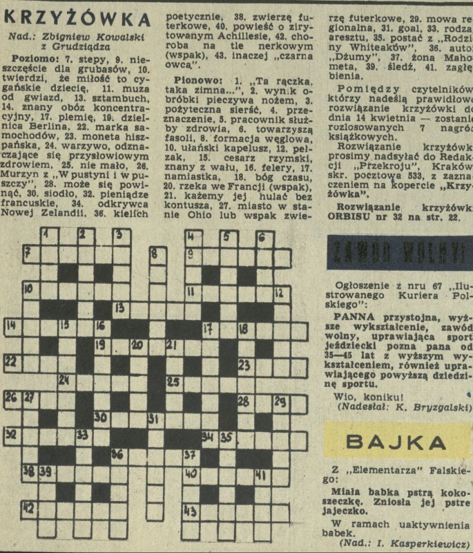 Archiwum / Krzyżówka nr 626 (15/1957) 24594/123969 Podziel się Tytuł Krzyżówka Rubryka Krzyżówka Artykuł z numeru 626 (15/1957) Data wydania 7 kwietnia 1957