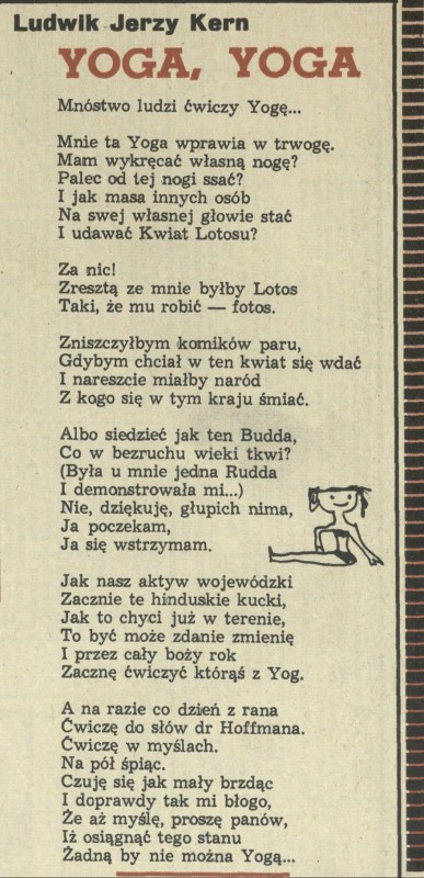 Archiwum / Poezja nr 1197 (11/1968) 17/57 Podziel się Tytuł Yoga, yoga Autor Ludwik Jerzy Kern Kategoria Poezja Artykuł z numeru 1197 (11/1968) Data wydania 17 marca 1968 Tagi yoga