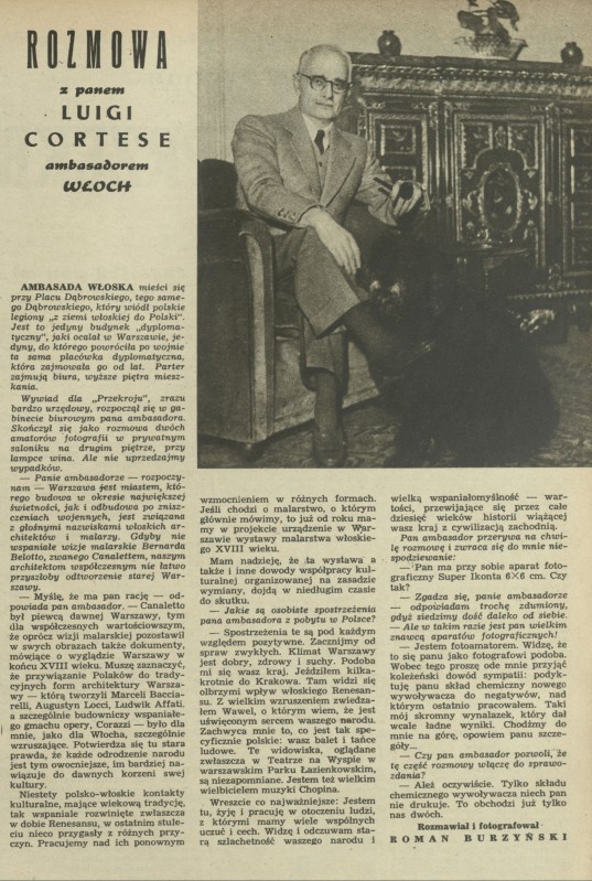Archiwum / Rozmowa z ambasadorem/chargé d’affaires nr 622 (11/1957) 21932/123969 Podziel się Tytuł Rozmowa z panem Luigi Cortese ambasadorem Włoch Autor Roman Burzyński Rubryka Rozmowa z ambasadorem/chargé d’affaires Artykuł z numeru 622 (11/1957) Data wydania 10 marca 1956 Tagi ambasada dyplomacja Włochy
