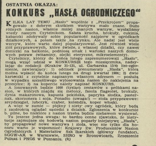 Archiwum / Konkurs nr 2020 (09/1984) 2/2 Podziel się Tytuł Konkurs „Hasła Ogrodniczego” Rubryka Konkurs Artykuł z numeru 2020 (9/1984) Data wydania 26 lutego 1984 Tagi konkurs ogrodniczy rozrywka