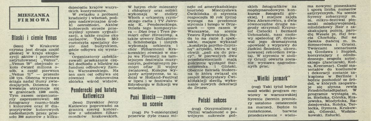 Archiwum / Mieszanka firmowa nr 1397 (03/1972) 56868/123969 Podziel się Tytuł Mieszanka firmowa Rubryka Mieszanka firmowa Artykuł z numeru 1397 (3/1972) Data wydania 16 stycznia 1972 Tagi mieszanka firmowa różności Penderecki