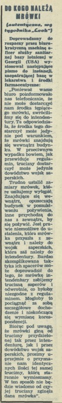 Archiwum / Społeczeństwo nr 854 (34/1961) 2/4 Podziel się Tytuł Do kogo należą mrówki Kategoria Społeczeństwo Artykuł z numeru 854 (34/1961) Data wydania 20 sierpnia 1961 Tagi Georgia mrówki USA