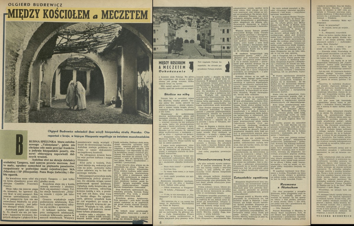 Archiwum / korespondencja własna "Przekroju" nr 651 (40/1957) 222/297 Podziel się Tytuł Między kościołem a meczetem Autor Olgierd Budrewicz Rubryka korespondencja własna "Przekroju" Artykuł z numeru 651 (40/1957) Data wydania 29 września 1957 Tagi Maroko Tanger tyfus Hiszpania muzułmanie islam